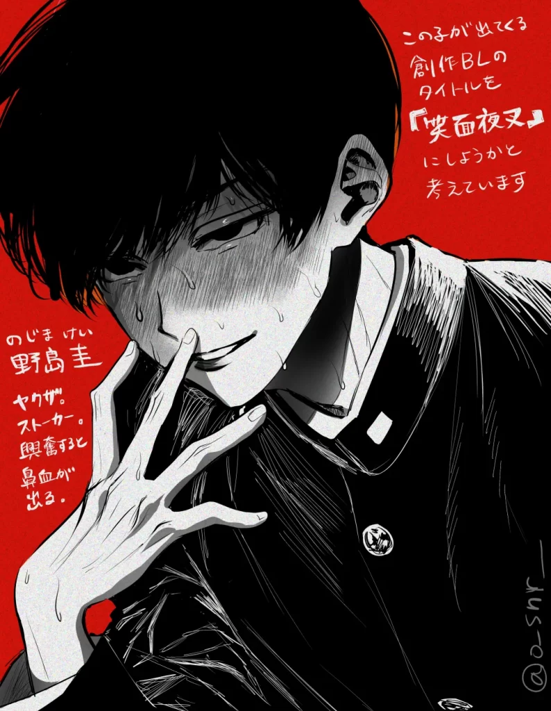 ちなみに圭の刺青は旧デザイン(素材)です。本当に何気なく描いたもので…圭の背負ってるものを考えたときこれではよろしくないと思ったので、刺青について調べてデザインし直しました。最近のからちゃっかり変えています。